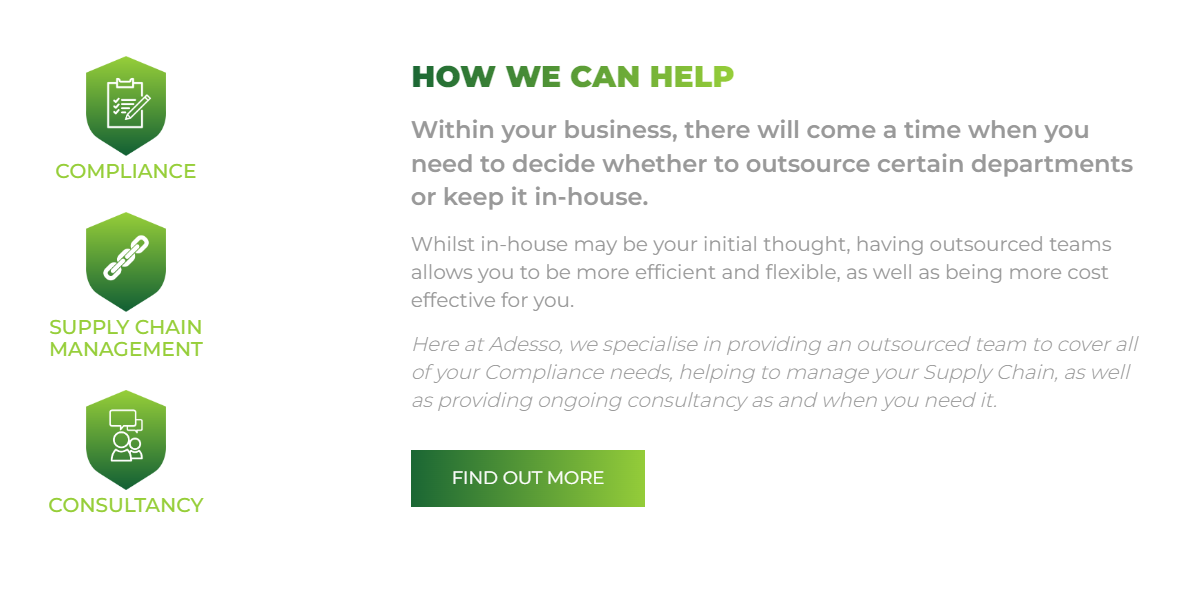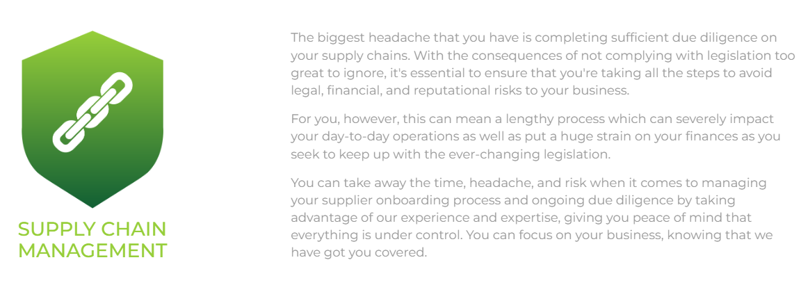 Which is where we come in. Between our team, we’ve worked with a number of companies, ranging from start-ups to international organisations helping them with all things compliance, supply chain management and ongoing consultancy and support. For us, it’s important that we give you transparent, ethical, and honest support.