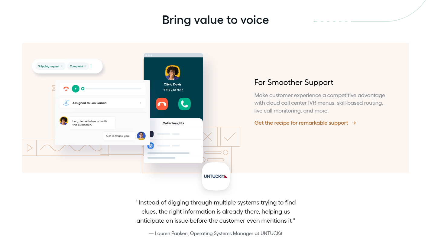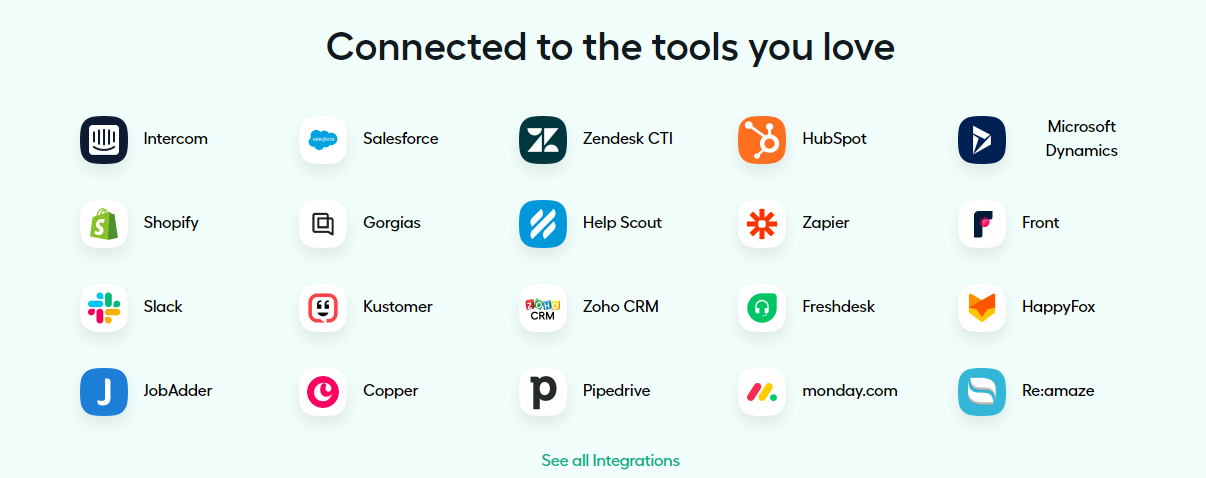 A voice platform that integrates seamlessly with popular productivity and helpdesk tools.