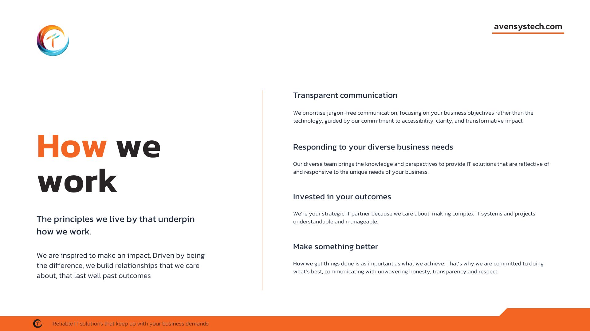 After 6 months since our move, the IT support is the best service I’ve ever seen, communication is very quick and tickets are resolved efficiently. if I’m unsure on improvements/changes to make to the business, Avensys is there to advise and help every step of the way. The business has greatly benefitted since working with Avensys and no doubt will continue to do so.