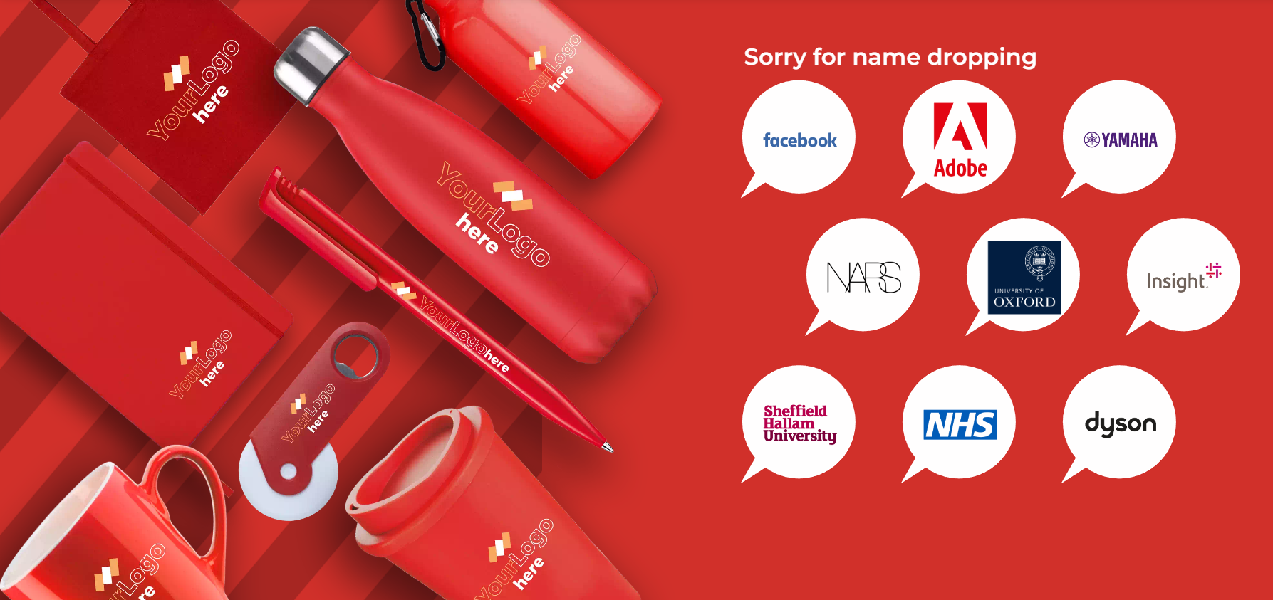 These show promotional gifts to schools, branded merch for NHS, for big name brands, local authorities and show how printed merchandise is deployed across the entire business spectrum. A special thank you to our clients.