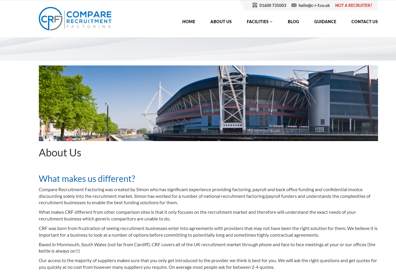 CRF was born from frustration of seeing recruitment businesses enter into agreements with lenders that may not have been the right solution for them. We believe it is important for a business to look at a number of options before committing to potentially long and sometimes highly contractual agreements.