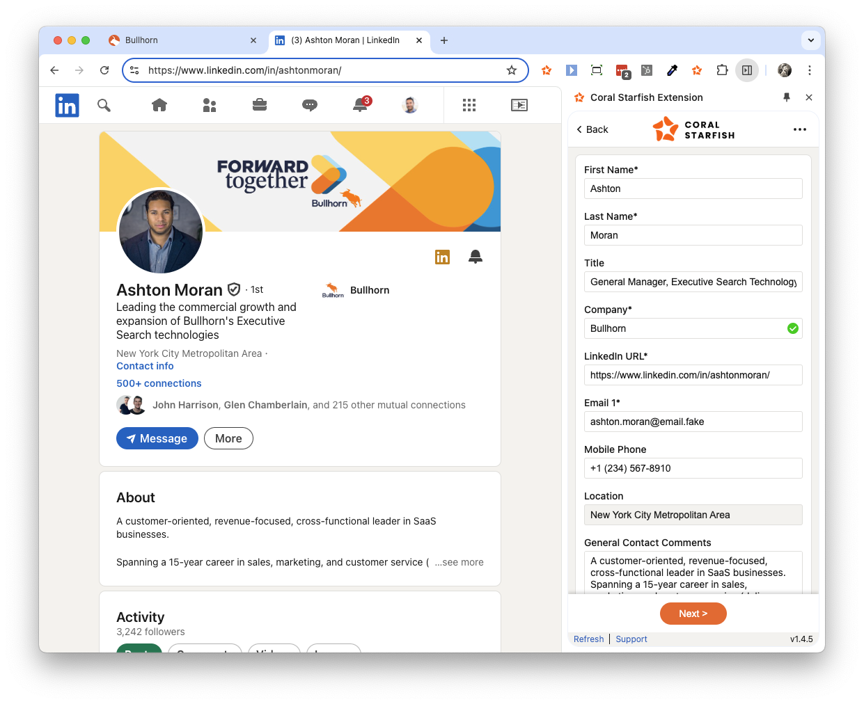 • Instantly identify if the person you're viewing is in your database (Candidate, Contact or Lead)