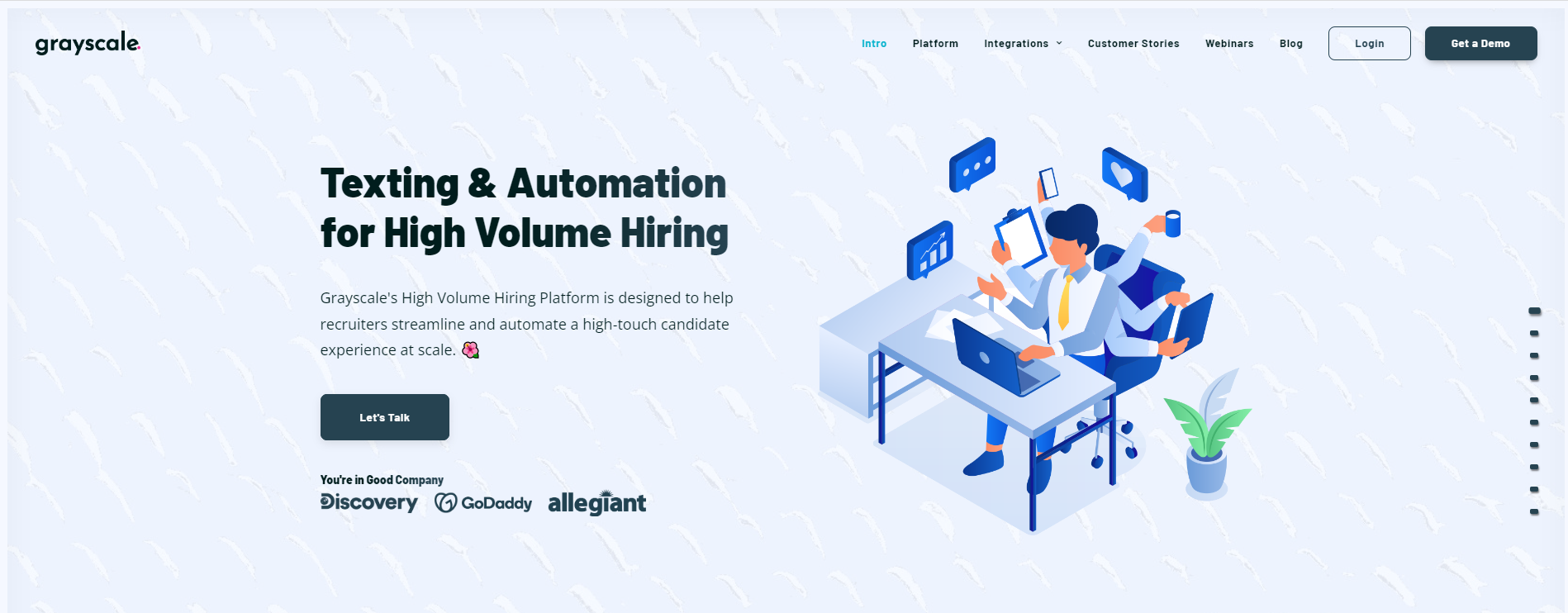 Grayscale's High Volume Hiring Platform is designed to help recruiters streamline and automate a high-touch candidate experience at scale.