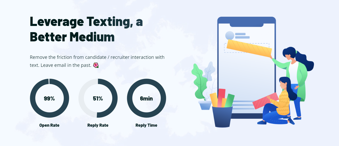 Remove the friction from candidate / recruiter interaction with text.