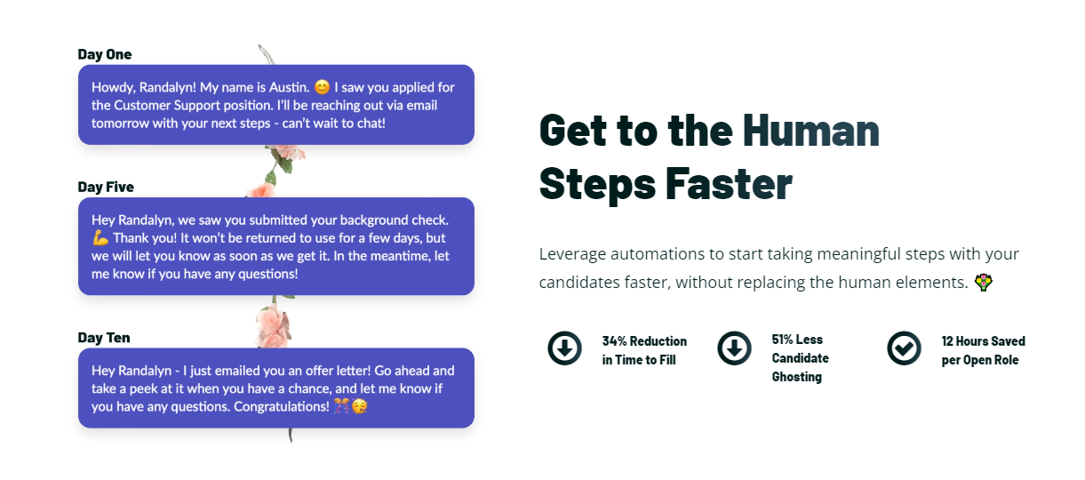 Leverage automations to start taking meaningful steps with your candidates faster, without replacing the human elements.