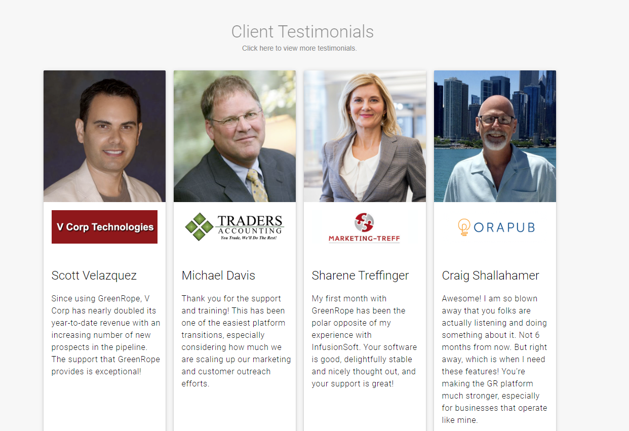 GreenRope's mission is to provide the most innovative and complete sales and marketing platform, backed by the best service and support in the business, to enable maximum ROI and growth for small and mid-sized businesses.