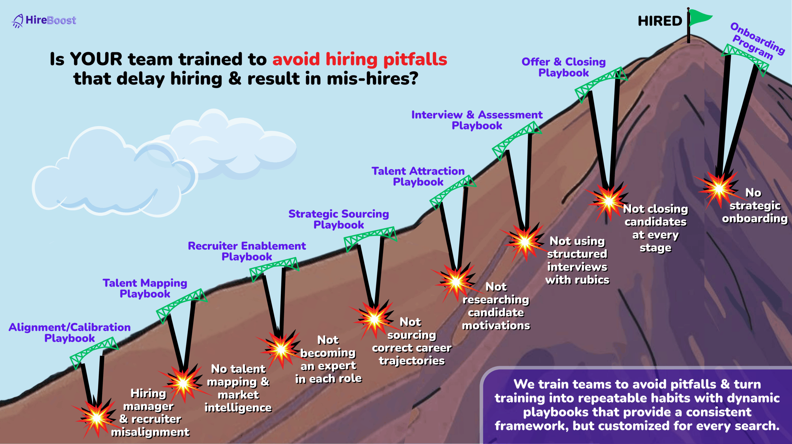 To ensure long-term success, HireBoost also provides Live Training to elevate recruiting teams into strategic talent advisors. This learning is reinforced through an automated, AI-driven framework that allows your team to apply these elite best practices to every search instantly.