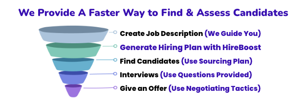 HireBoost eliminates the guesswork that causes searches to drag on by allowing you to upload a job description and receive a custom hiring strategy with the precision of an elite search firm. Every strategy includes: