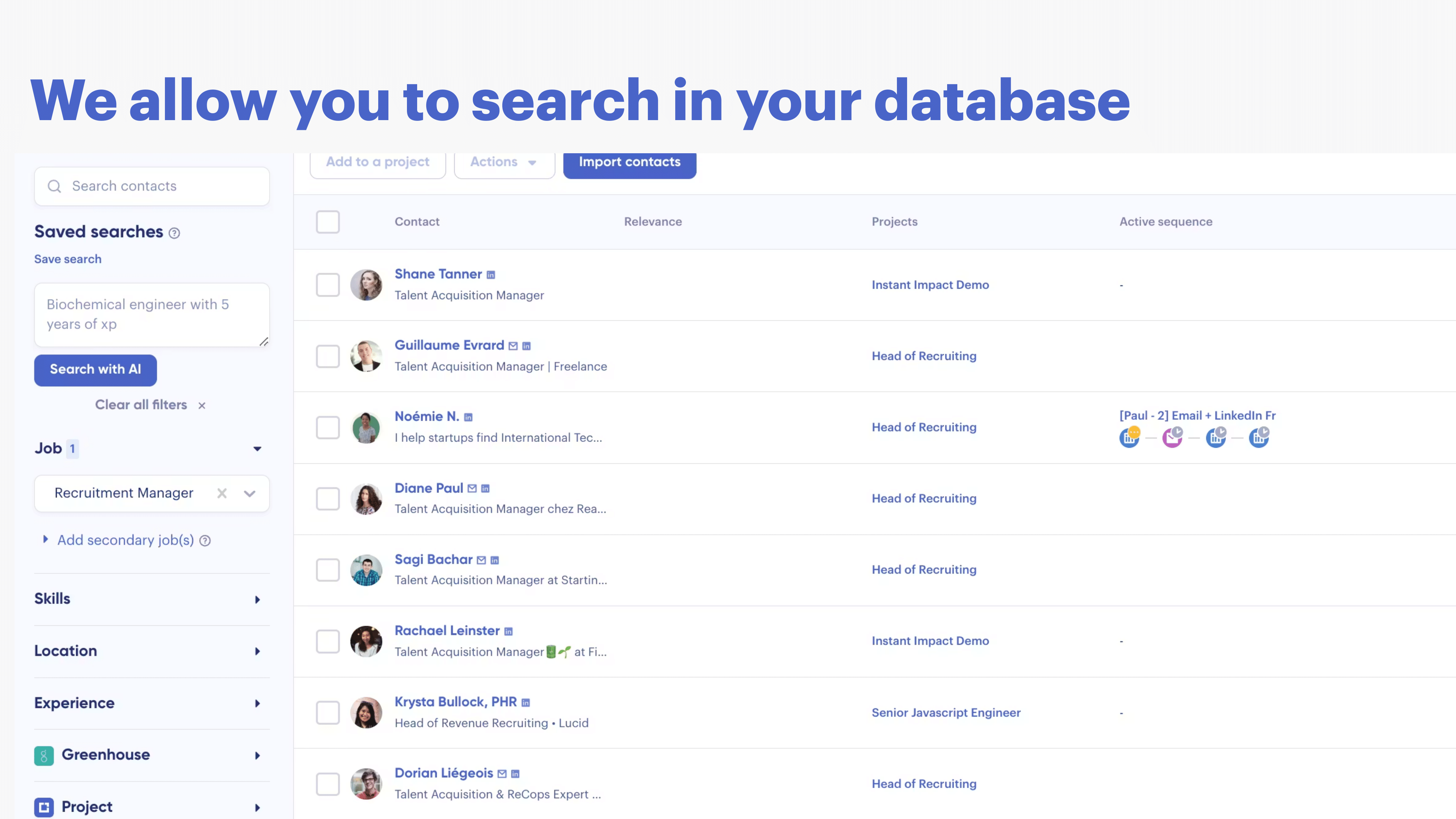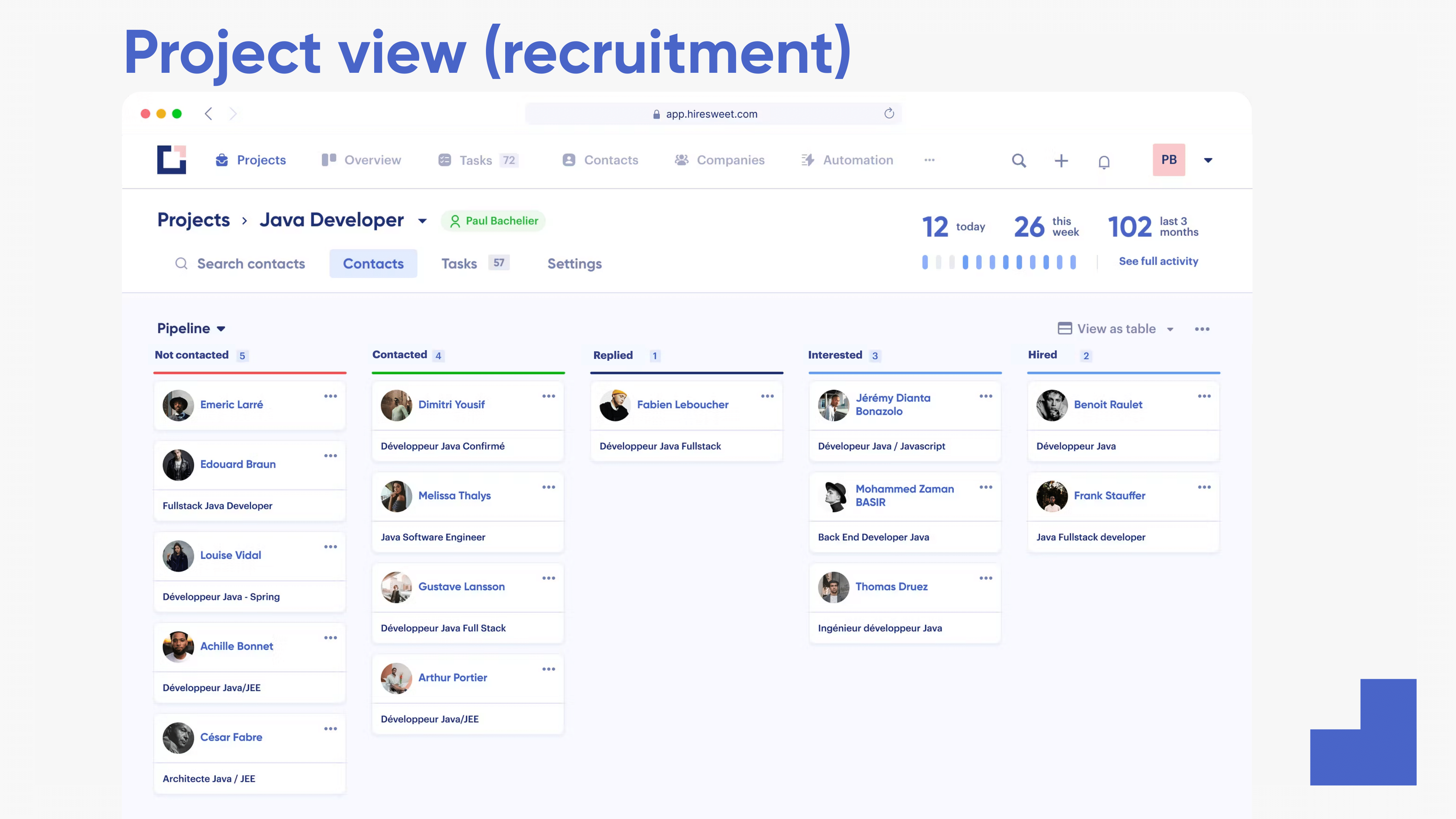 Our goal is to simplify recruiters' daily work and significantly boost their productivity—with results showing 30% more candidates contacted and twice as many job offers generated!