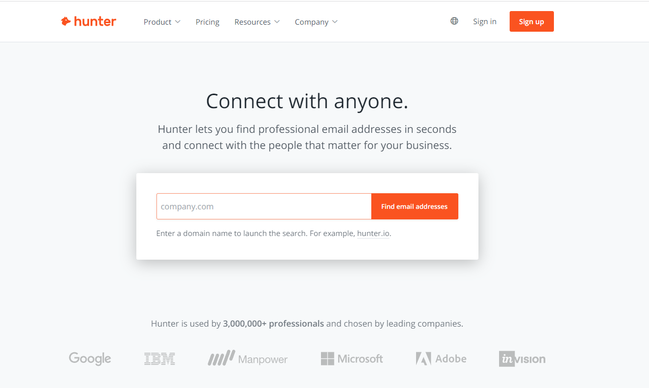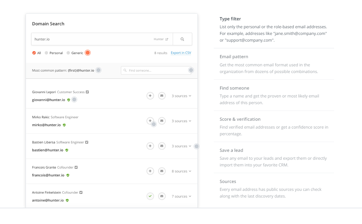 Hunter organizes the data gathered from billions of public web pages and distributes it through tools that anyone can use.