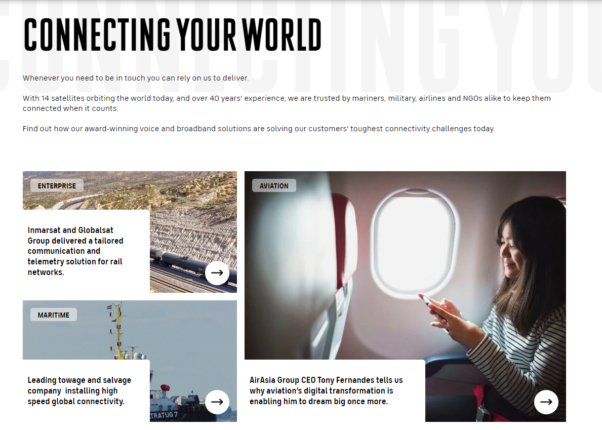 The world leader in global mobile satellite communications, we have been connecting people, organisations and places across the globe for more than 40 years through our seamless, reliable and secure networks.