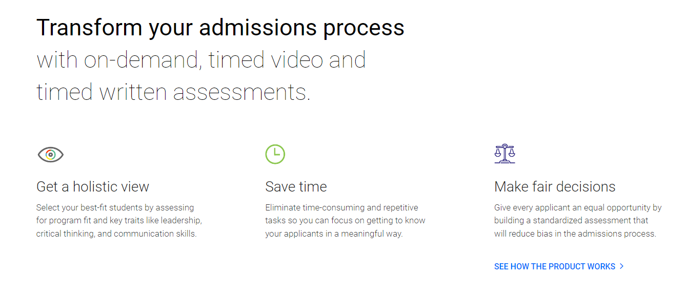 Kira transforms the admissions process by combining on-demand, timed video and timed written assessments with existing admissions requirements.