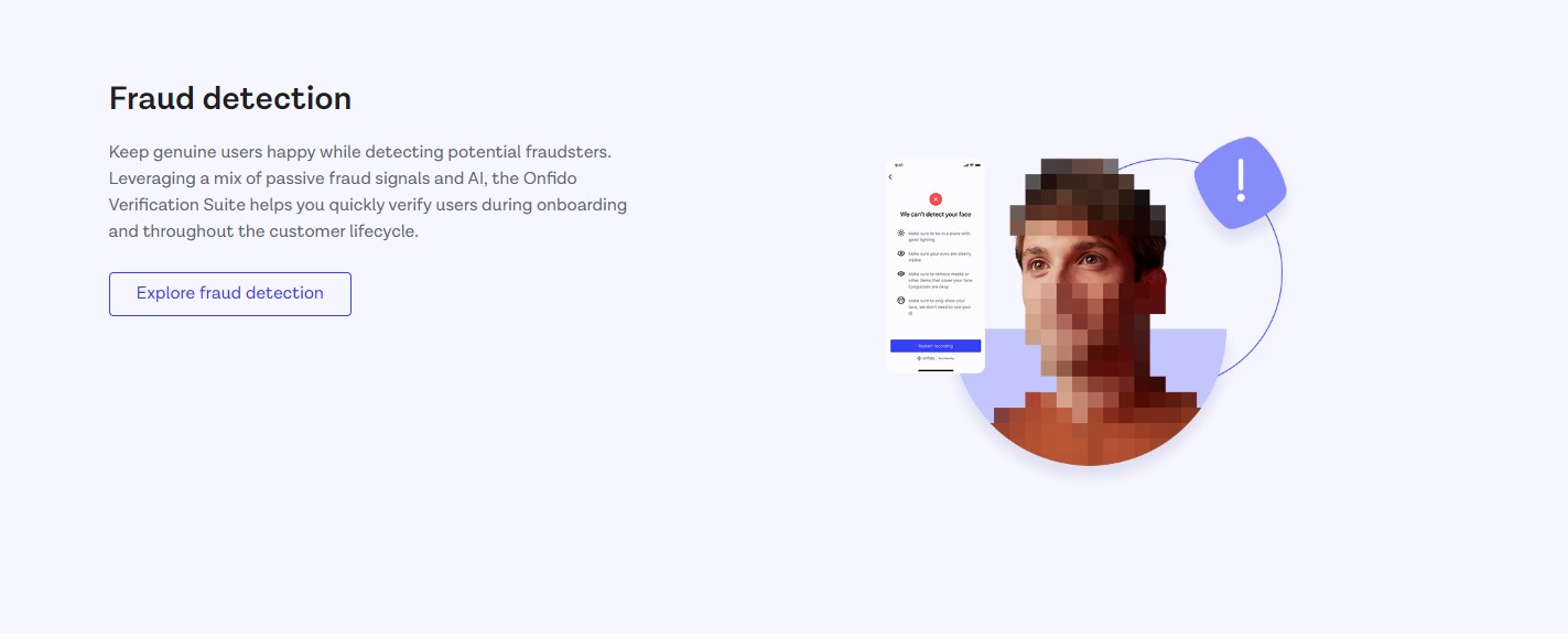 Use a complete, AI-powered identity verification solution to power open, secure, and inclusive relationships between you and your customers. The Onfido Real Identity Platform helps you reduce the cost of customer acquisition, onboard new customers, detect fraud and satisfy KYC, AML, and other global compliance requirements.