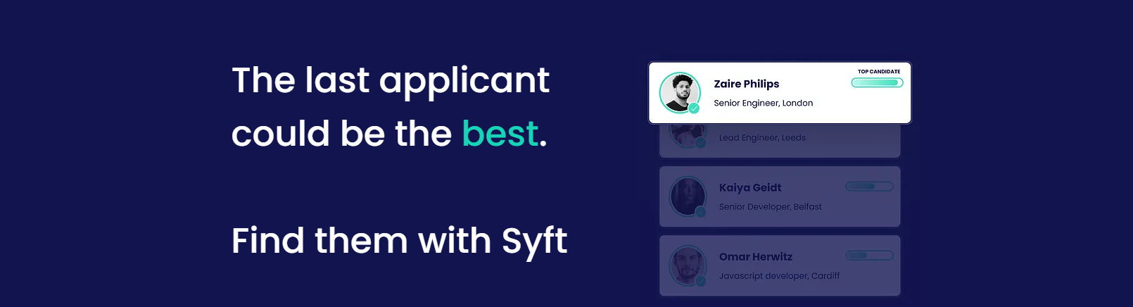 Syft is a AI-powered multilingual, blind-hiring CV and job parsing ATS/CRM integration. It helps with applicant diversity, saves you time, money, and effort by automagically finding you the best quality candidates in seconds.