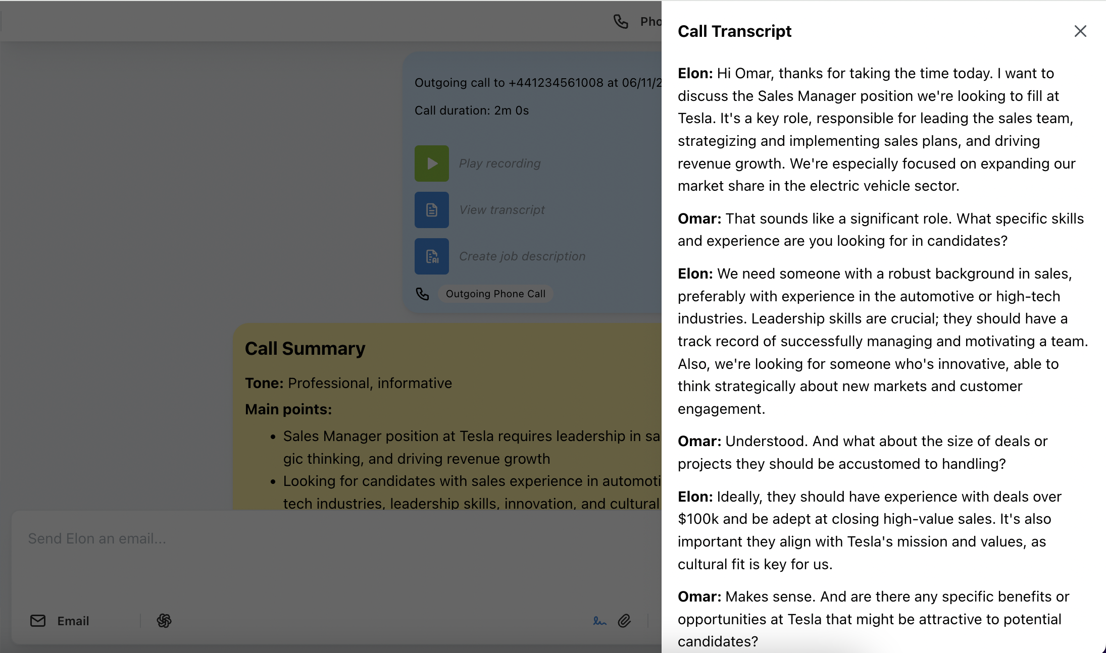 Calls are converted into text to automate admin tasks with AI, boosting productivity. Save up two hours per day and focus on what matters most - your professional relationships.