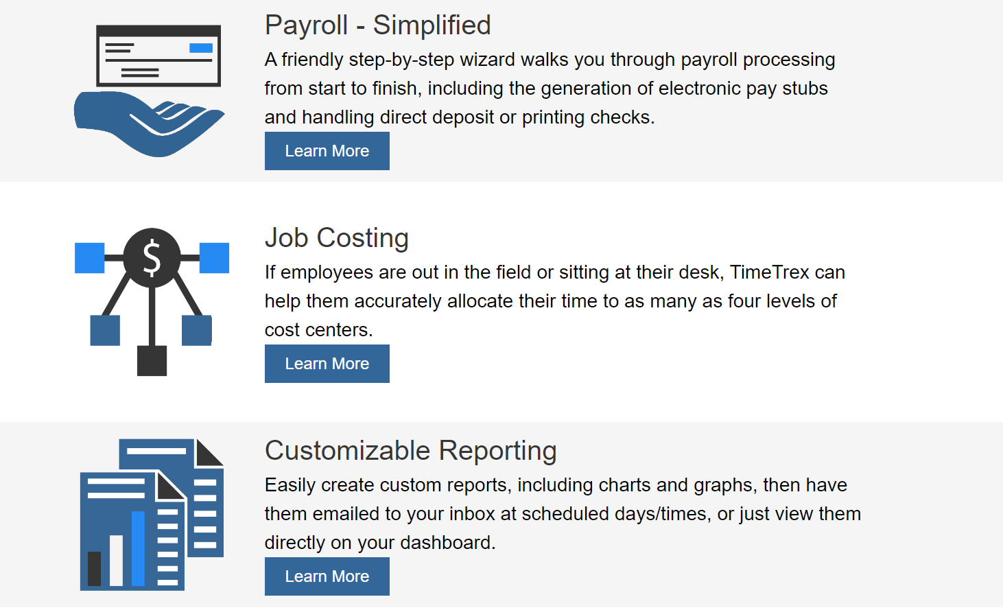 TimeTrex facilitates the electronic transfer of payroll funds to your employees, eliminating costly payroll outsourcing middle men.
