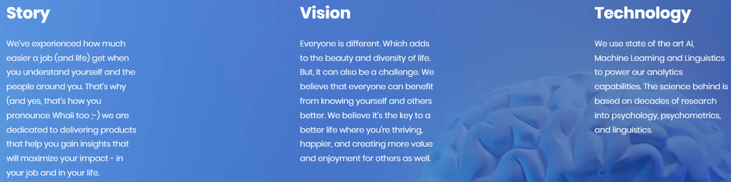 We believe better insights into the people that are important to you (e.g., prospects, customers, employees, colleagues etc.) and identifying things such as personality traits, values, company culture preferences and personal needs are essential for people to do their jobs better and thrive.